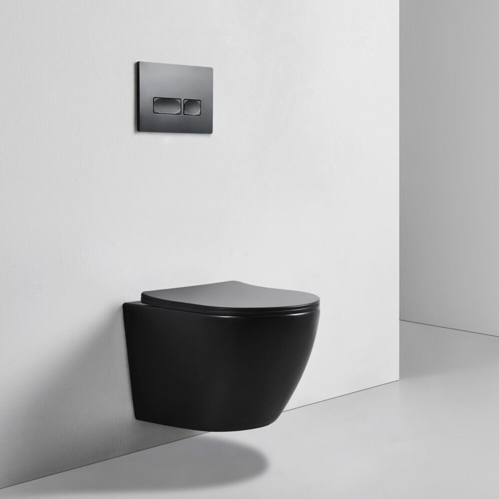 Унитаз Calypso подвесной 490*370*360мм черный, торнадо ультратиий фронтальный, сиденье дюропласт микролифт 1 кнопка, горизонтальный выпуск