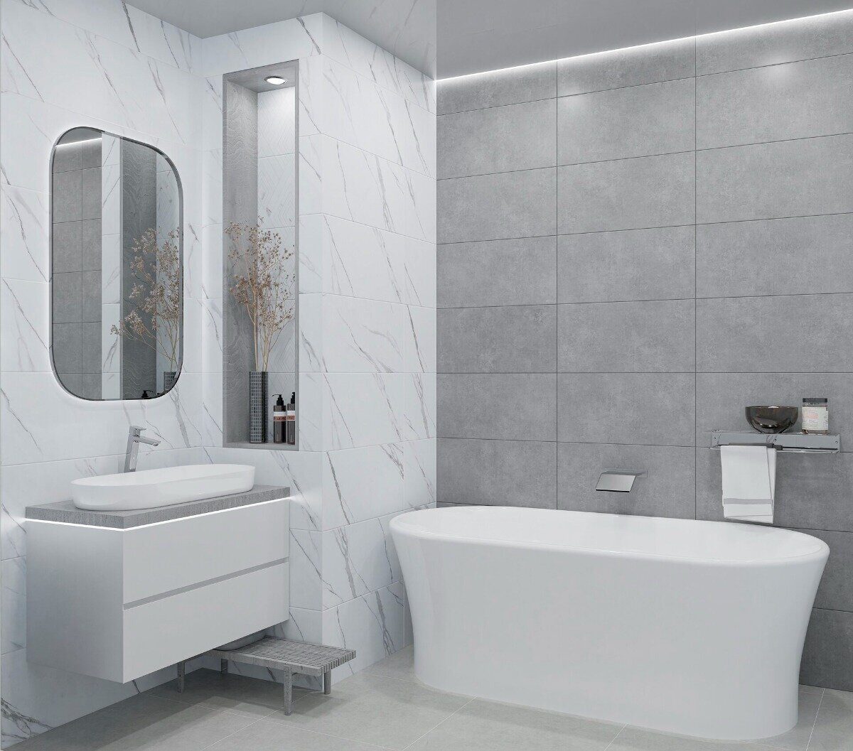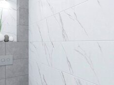 Размер: 31,5х63 см. Цвет: белый, под мрамор. Матовая. Отпускается: кратно упаковке 1,59м2/8 шт