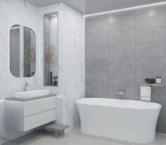 У нас можно подобрать всю необходимую сантехнику, мебель для ванных комнат, напольные покрытия, межкомнатные двери...