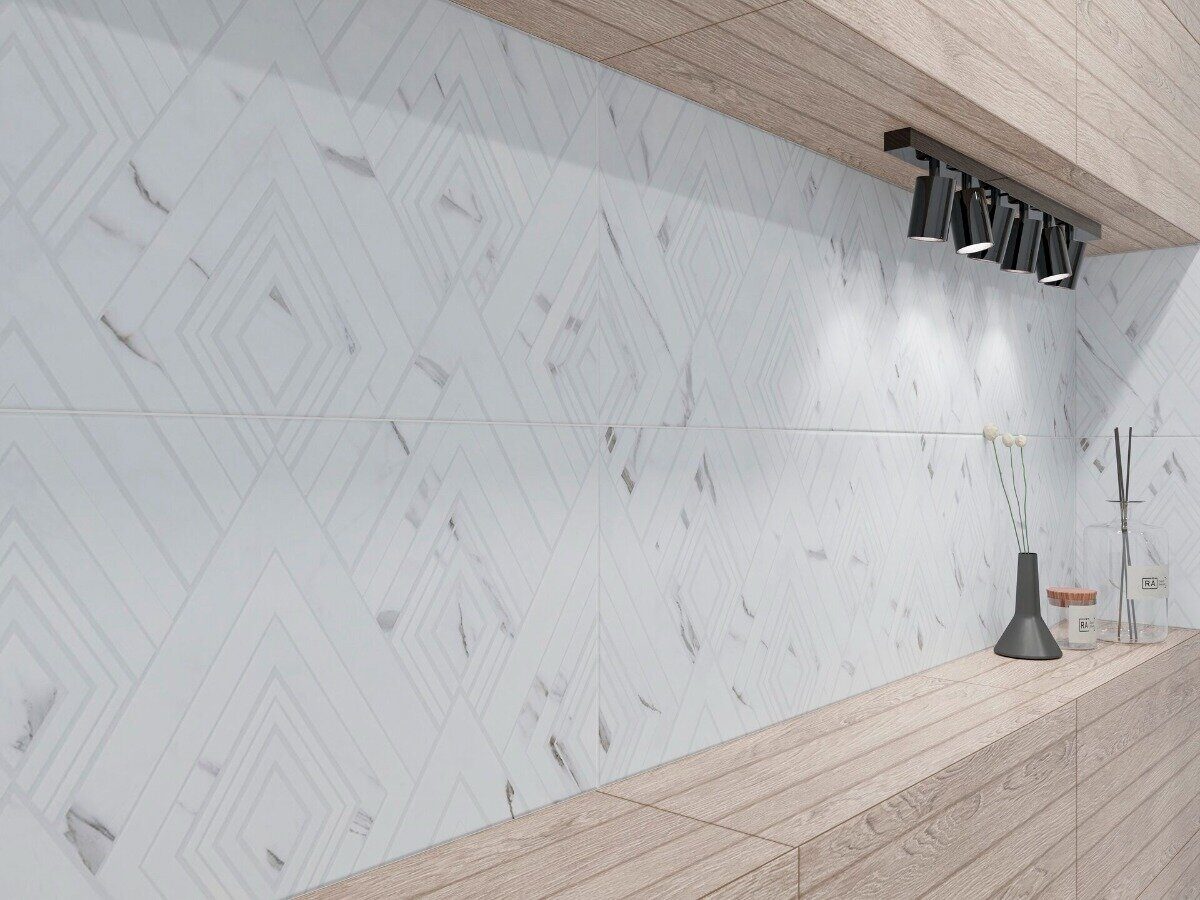 Carrara Geometria настенная плитка белая матовая sugar-эффект декофон 31х63см Azori
