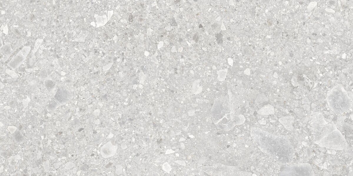 Размер: 120x60см. Цвет: светло-серый. Матовый. Терраццо. Отпускается: кратно упаковке 1.44 м2 = 2 шт.