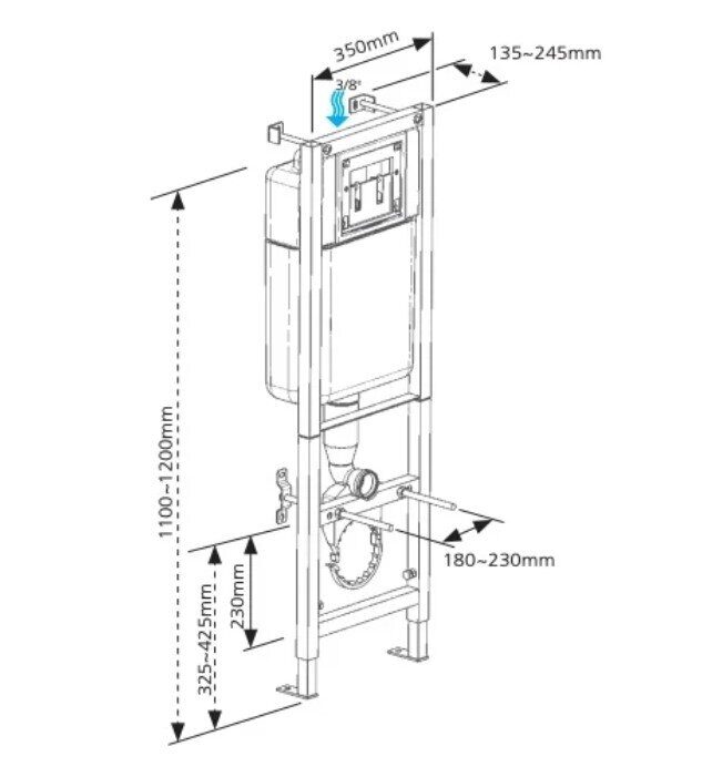 Размер:35х13,5х110см. Монтаж в капитальную стену и пол. Клавиша хром глянцевый в комплекте