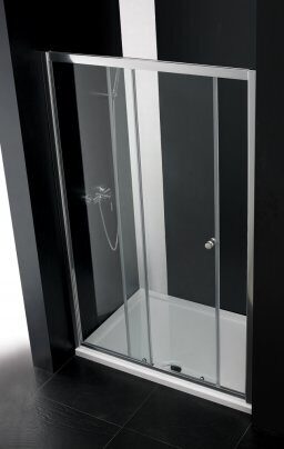 Размер: 160x195 см. Профиль: анодированный алюминий, хром. Стекло закаленное прозрачное 6 мм. Дверь: раздвижная. Ширина входа: 78,3 см. Габариты с регулировками, см: (158-162)х195.