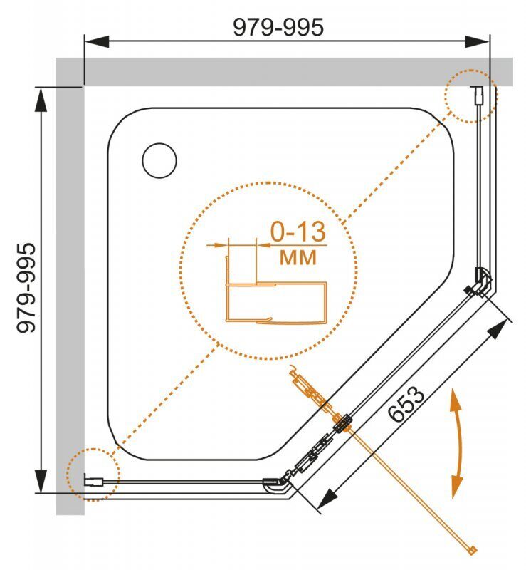 Размер: 100х100х195 см. Ширина входа, см: 65,3