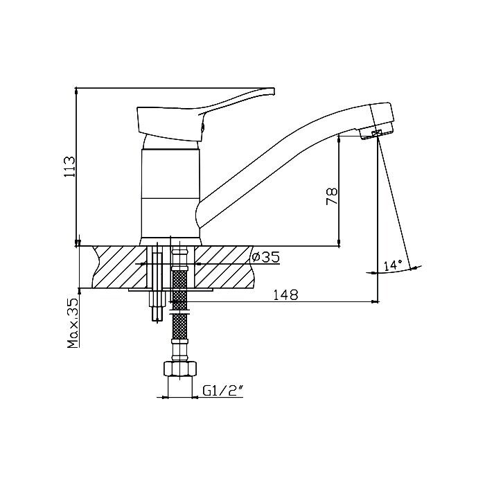 Комплект: Смеситель, подводка. Управление - рычажное.