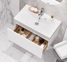 Главная Каталог магазина Мебель для ванной комнаты Compo 70-0-1 Velvex подвесная тумба белая для ванной комнаты с керамической раковиной 9696-70