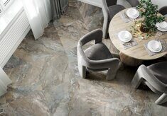 Дизайн коллекции Corsa представляет собой утончённую интерпретацию мрамора Forest Brown с матовой рельефной поверхностью, дополненной глянцевыми акцентами карвинга, подчёркивающими узор. Уникальная палитра включает переходы от серо-зелёных до бежево-коричневых тонов с изящными светлыми и глубокими тёмными прожилками, создающими естественную гармонию и привлекательность.