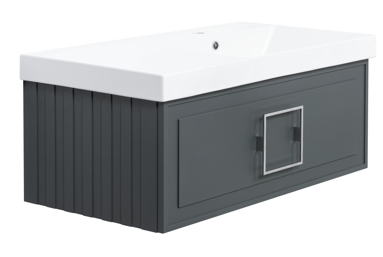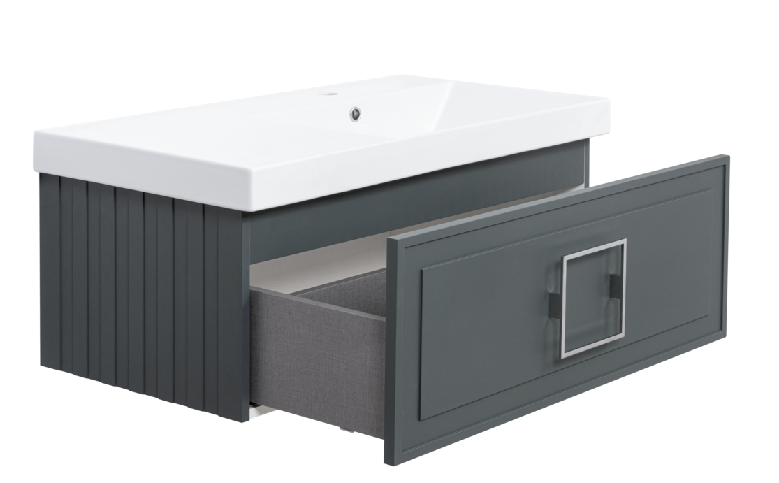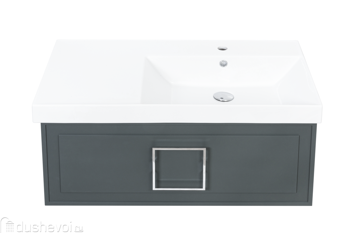 Размер: 87,6х46,9х35см. Цвет: серый с зеленоватым оттенком. Матовый.  1 ящик выдвижной. Раковина La Fenice Cubo 90 см CU.NN.90R правая или левая приобретается отдельно