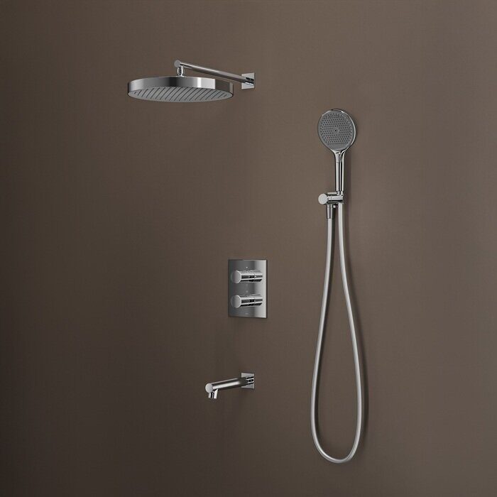 Встраиваемая душевая система с термостатом, тропическим и ручным душем Duna – воплощение актуальных трендов в дизайне смесителей в безупречном исполнении: фрезеровка, модные цвета и фактуры.
