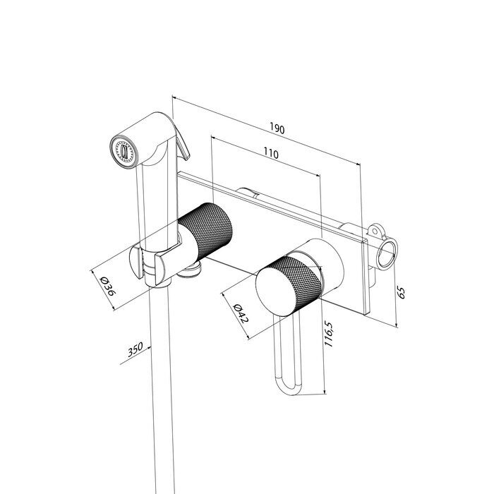 Смеситель с гигиеническим душем Duna – воплощение актуальных трендов в дизайне смесителей в безупречном исполнении: фрезеровка, изысканная ручка-петля, модные цвета и фактуры.Ручка выполнена из латуни для сохранения чёткости линий фрезеровки.