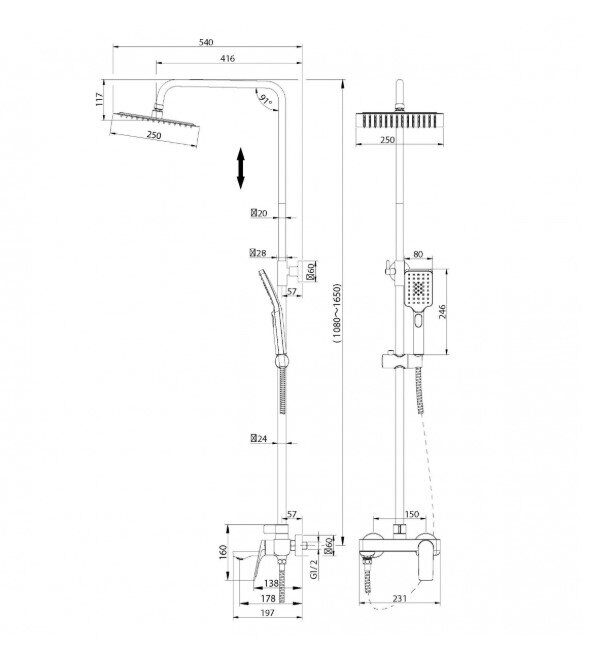 Оснащение - крепления; эксцентрики; душевой шланг; душевая лейка; аэратор; вентиль; держатель для душа; перекл
