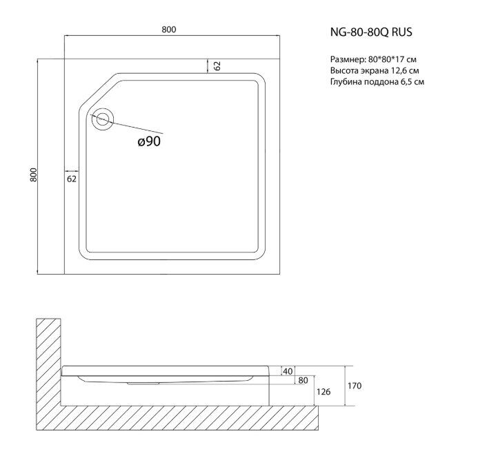 Душевой поддон акриловый 80х80см 80801QRUS