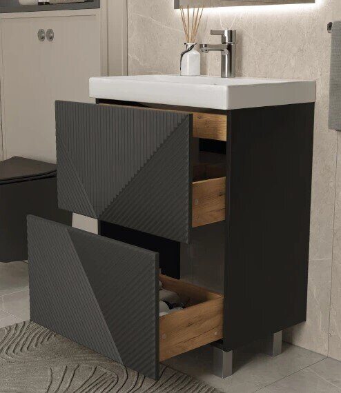 Edge 600-0-2 Velvex напольная тумба графит для ванной комнаты с керамической раковиной 9696-60