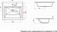 Размер: 60х13,8х50 см. Цвет: белый матовый. Материал: литьевой мрамор. С отверстием под смеситель.