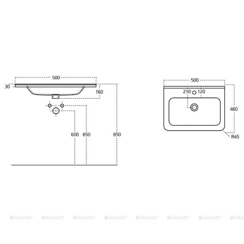 Эмбер 50 тумба белая матовая для ванной комнаты 2 ящика с раковиной-столешницей 50 cm (URBAN) Sanovit Aquanet