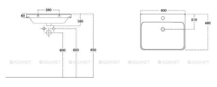 Размер: 50х39,5х14,5см. Цвет: черный матовый. Материал: керамика. Без отверстия под смеситель.
