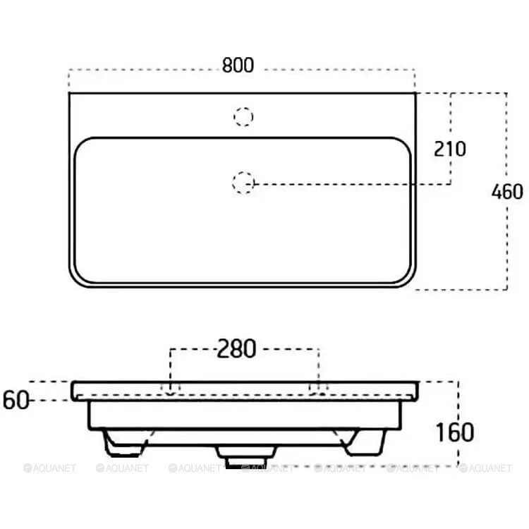 Ирис раковина накладная 1010*475*205 мм черная матовая с отверстием под смеситель Aquanet