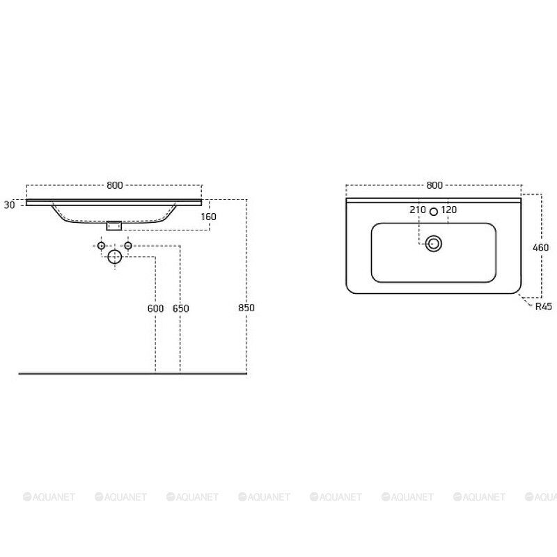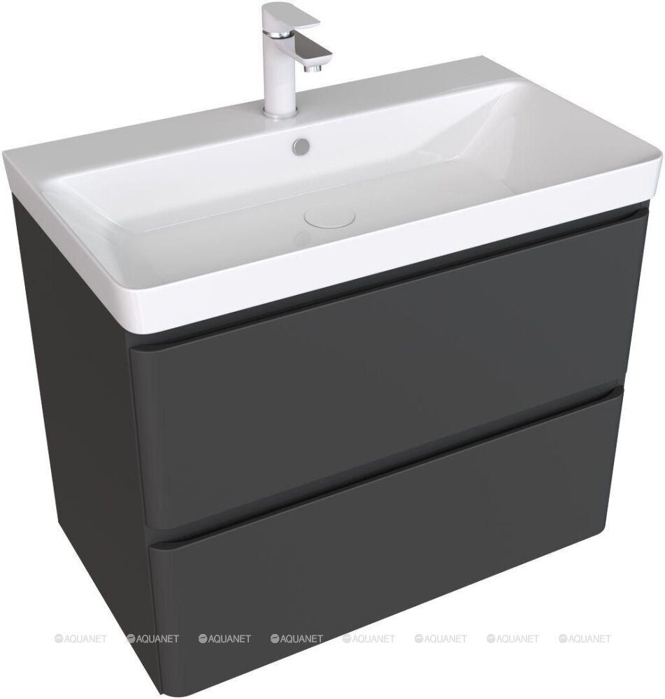 Эмбер 80 тумба черная матовая для ванной комнаты 2 ящика с раковиной-столешницей 80 cm (URBAN) Sanovit Aquanet