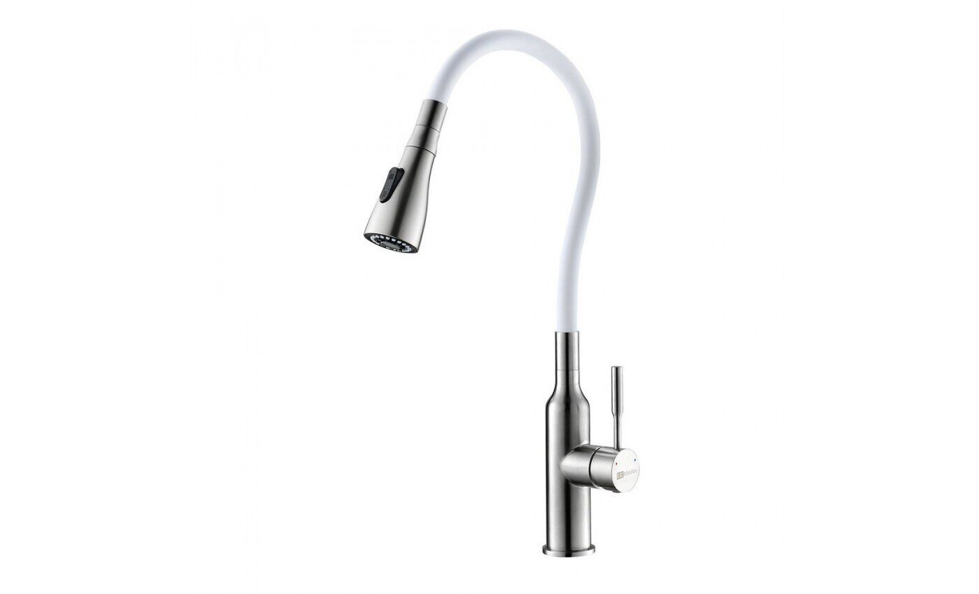 LemarkExpert LM5082S-White, смеситель для кухни с гибким поворотным изливом, хром-белый Lemark