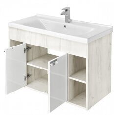 Размер (см): 61х99,2х42,9 Цвет: белый/дуб крафт. Комплект: ручка - 2 шт., Регулируемый навес - 2 шт., Полка - 1 шт., Фасад створка (петли с интегрированной системой плавного закрывания) - 2 шт. Раковина Миранда 100