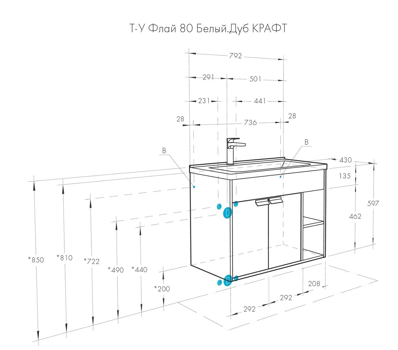 Главная Каталог магазина Мебель для ванной комнаты Флай 80 см тумба белая/дуб крафт для ванной комнаты с раковиной Миранда 80 Aquaton