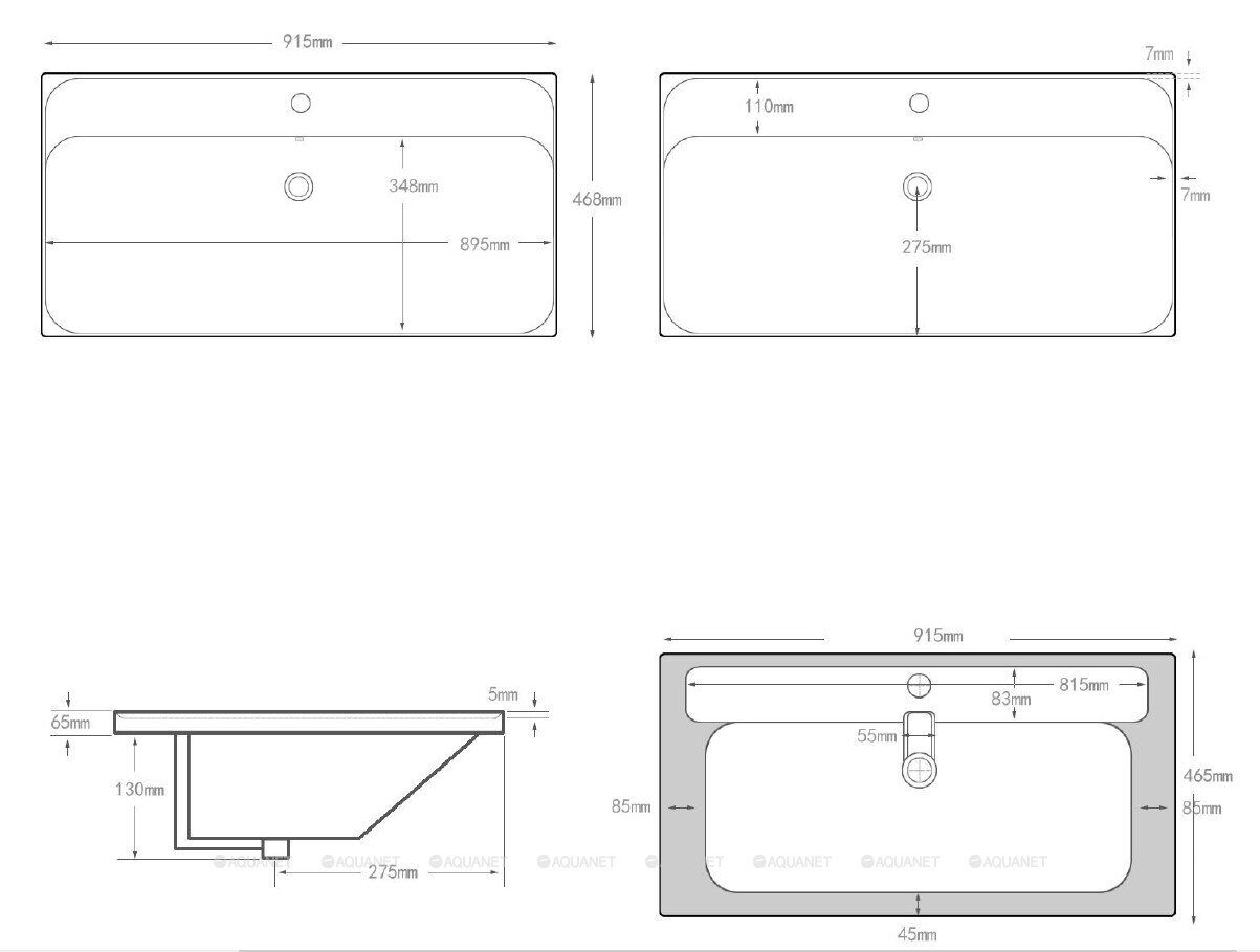 Главная Каталог магазина Сантехника Раковины/Умывальники Flash 915*468*195 раковина накладная керамическая с отверстием под смеситель Aquanet