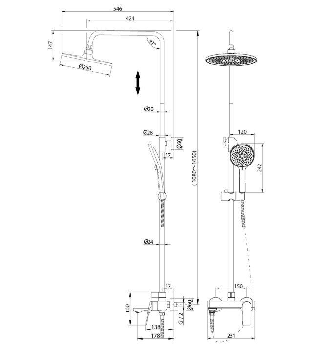 Galaxy 500.K35.01.210 Grossman душевая стойка с тропическим душем и со смесителем, черная