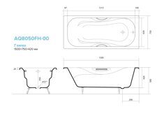 Размер: 150х70см. Глубина 42см. Объем: 150л. Ручки хром и ножки 4 шт в комплекте