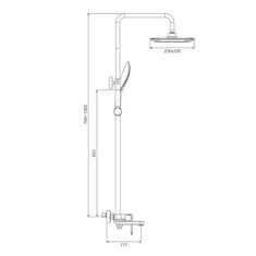 Тропический душ 23х23 см. Цвет: оружейная сталь. Материал: латунь. Монтаж: на стену. Тип: со смесителем, с изливом.