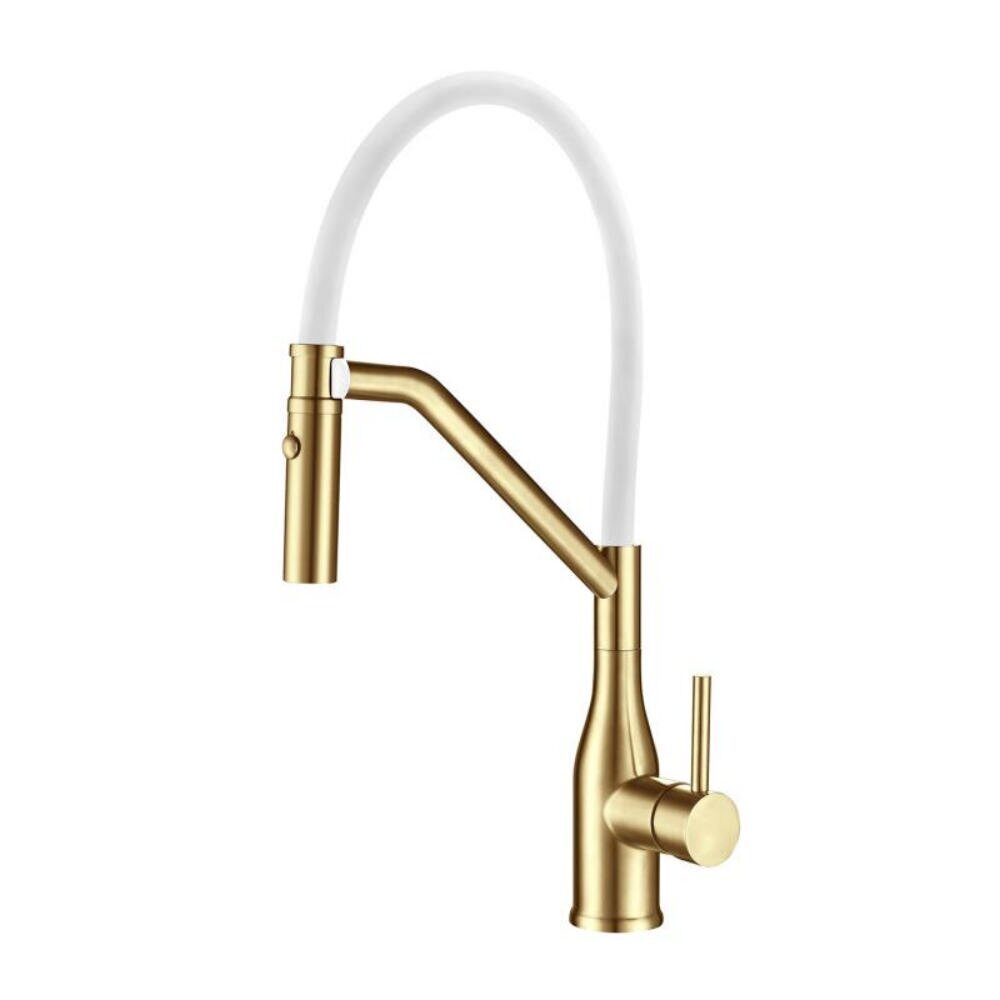 GappoGappo G4098-13 смеситель для кухни с гибким изливом сатин золотой/белый