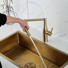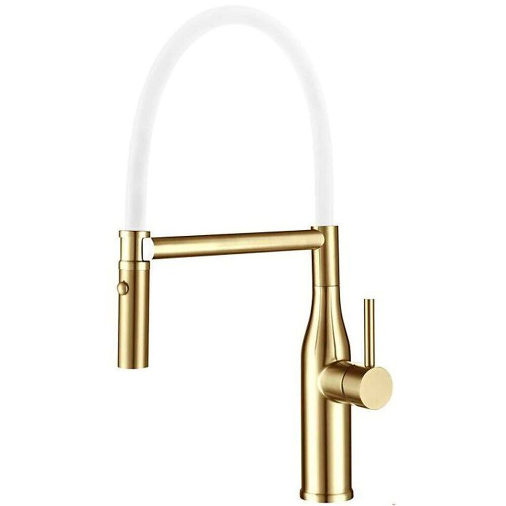 Gappo G4098-23 смеситель для кухни с гибким изливом белый/золотой сатин