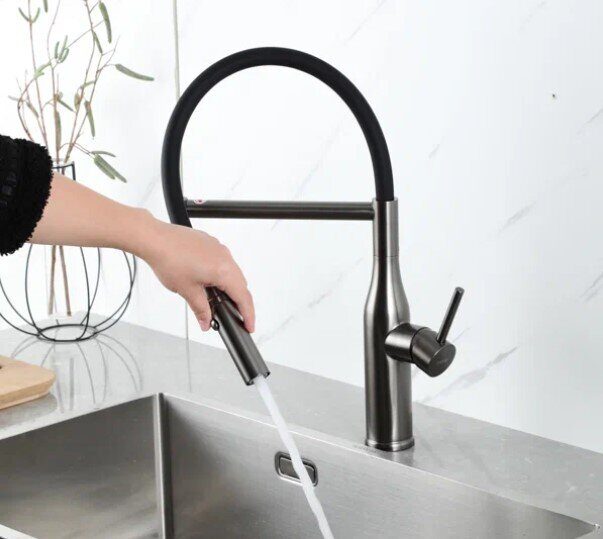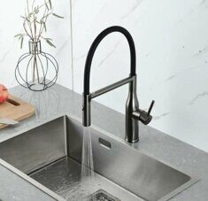 Главная Каталог магазина Сантехника Смесители Gappo G4098-29 смеситель для кухни с гибким изливом Оружейная сталь/черный