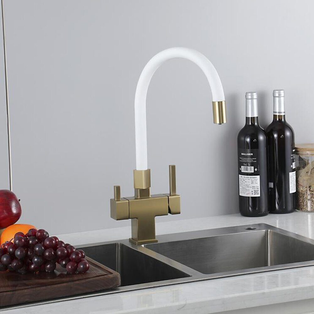 Gappo G4395-33 смеситель для кухни с подключением фильтра для питьевой воды золотой сатин/белый