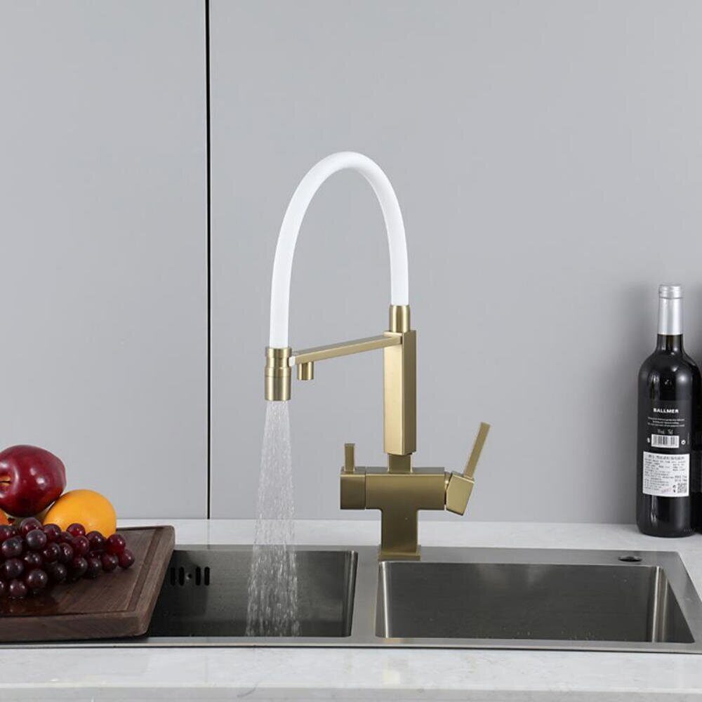 Gappo G4395-53 смеситель для кухни с подключением фильтра для питьевой воды сатин золотой/белый