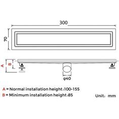 Размер: 30х7см. Цвет: сатин. Материал корпуса нержавеющая сталь. Материал решетки нержавеющая сталь. Вид затвора сухой