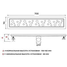 Размер: 70х7см. Цвет: сатин. Материал корпуса нержавеющая сталь. Материал решетки нержавеющая сталь. Вид затвора комбинированный