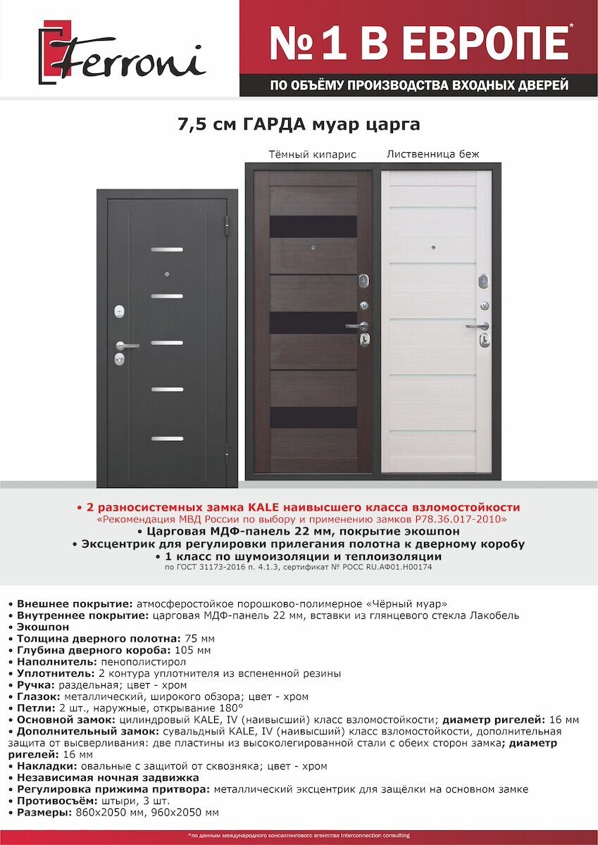 FerroniГарда Муар Царга 7,5 дверь входная Черный муар, Лиственница беж