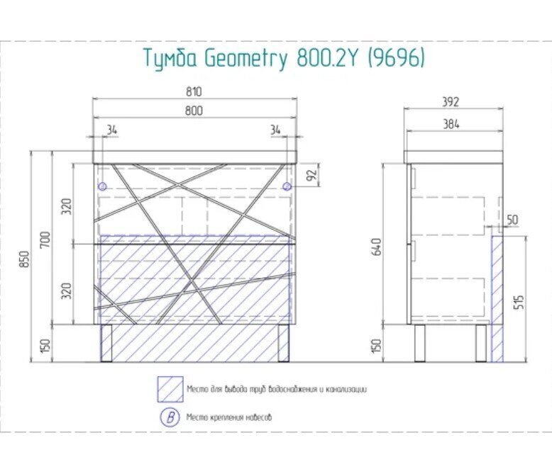 VigoGeometry 800-0-2 бетон тумба для ванной комнаты с умывальником Como 80