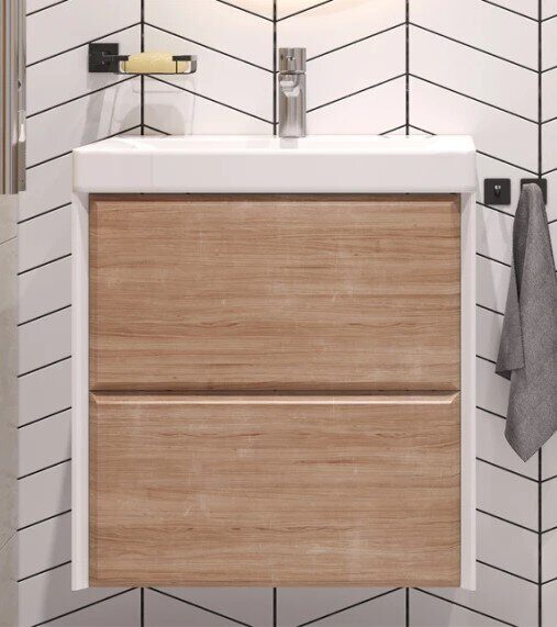 Gesso 60.2Y Velvex подвесная тумба дуб сонома/белая для ванной комнаты с керамической раковиной  9696-60