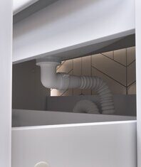 Оснащение: 2 выдвижных ящика, скрытые направляющие Hafele, интегрированная ручка, 2 навеса, 2 опоры квадратные регулируемые, 1 сифон