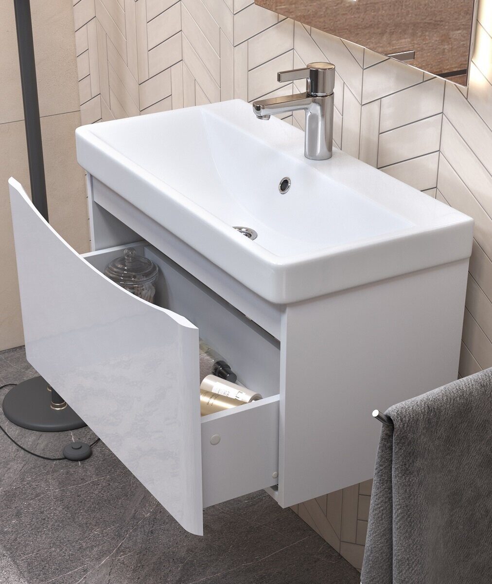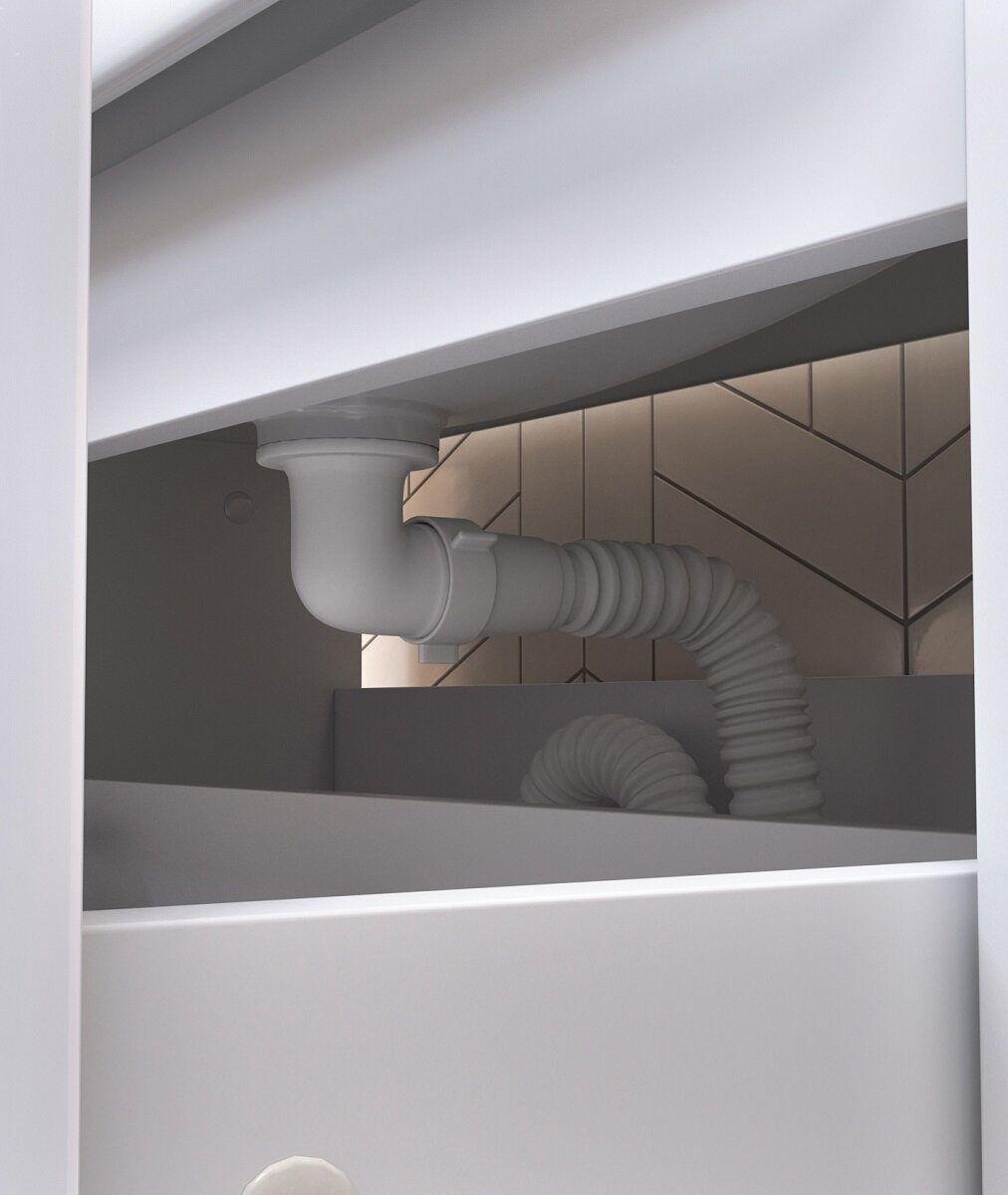 Оснащение: 1 выдвижной ящик, скрытые направляющие Hafele, интегрированная ручка, 2 навеса, 1 сифон