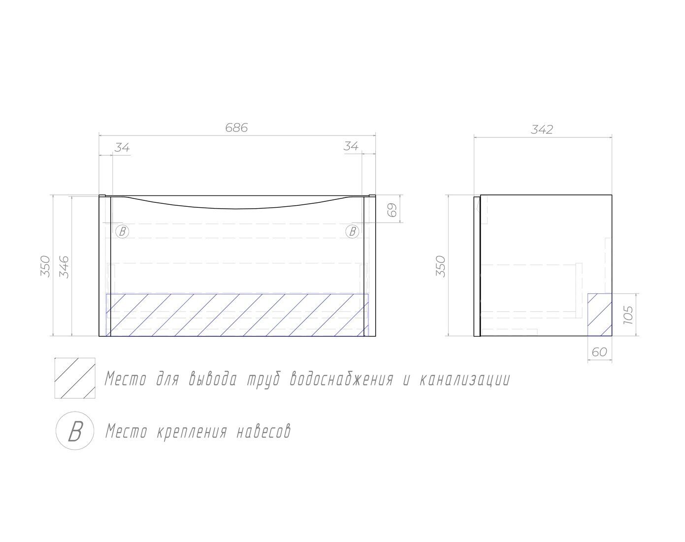 VigoGlem 700-0-1 тумба подвесная белая для ванной комнаты с умывальником 9595 (70)