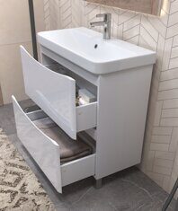 Glem 800-0-2 тумба напольная белая для ванной комнаты с умывальником 9595 (80)