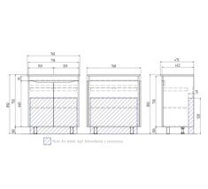 Оснащение: 2 дверцы, петли с механизмом доводчика, выдвижной органайзер для мелочей, шариковые направляющие полного выдвижения, 2 опоры квадратные регулируемые; 2 кухонные опоры, 1 сифон