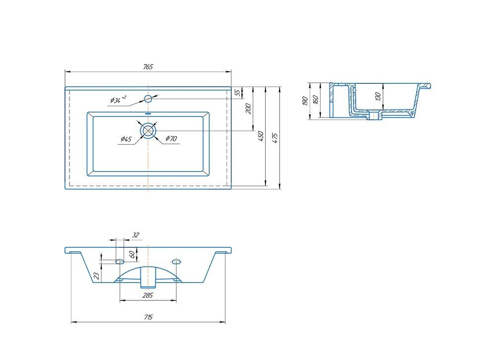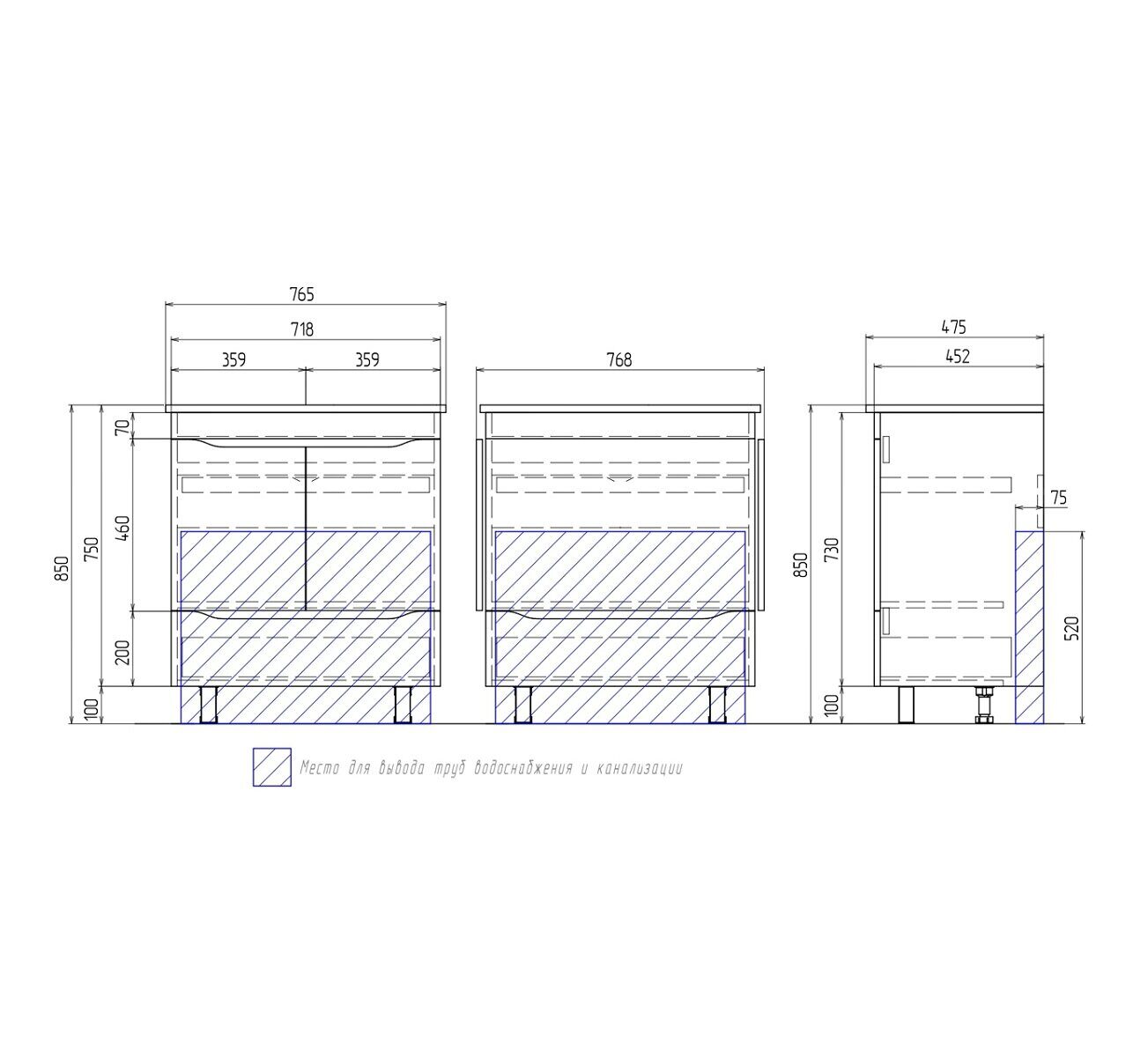 Умывальник Оскар 750 в комплекте. Размер: 760710190 мм (ШГВ)