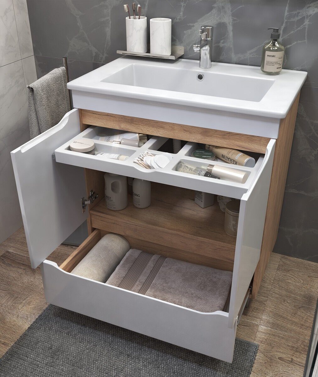 VigoGrani 750-2-1 тумба дуб золотой для ванной комнаты с умывальником Оскар 750