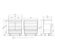 Оснащение: 2 дверцы, петли с механизмом доводчика, 1 ящик, выдвижной органайзер для мелочей, шариковые направляющие полного выдвижения, 2 опоры квадратные регулируемые; 2 кухонные опоры, 1 сифон