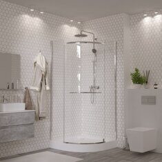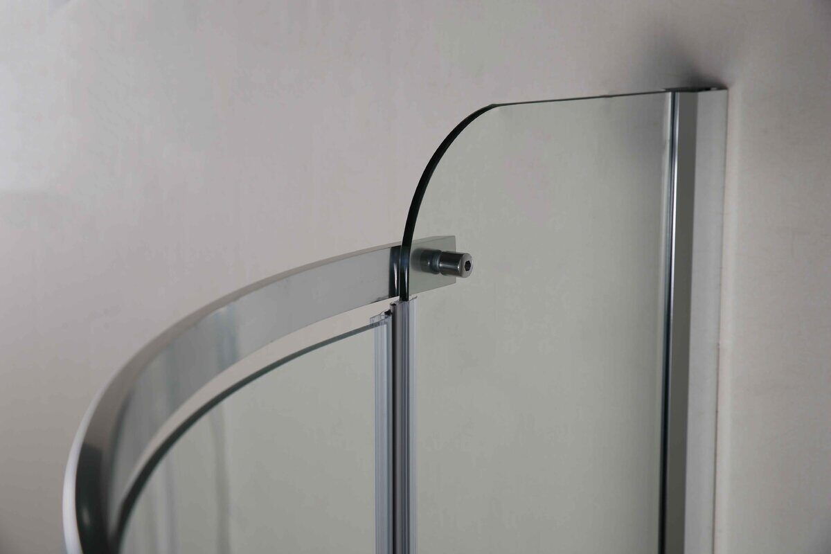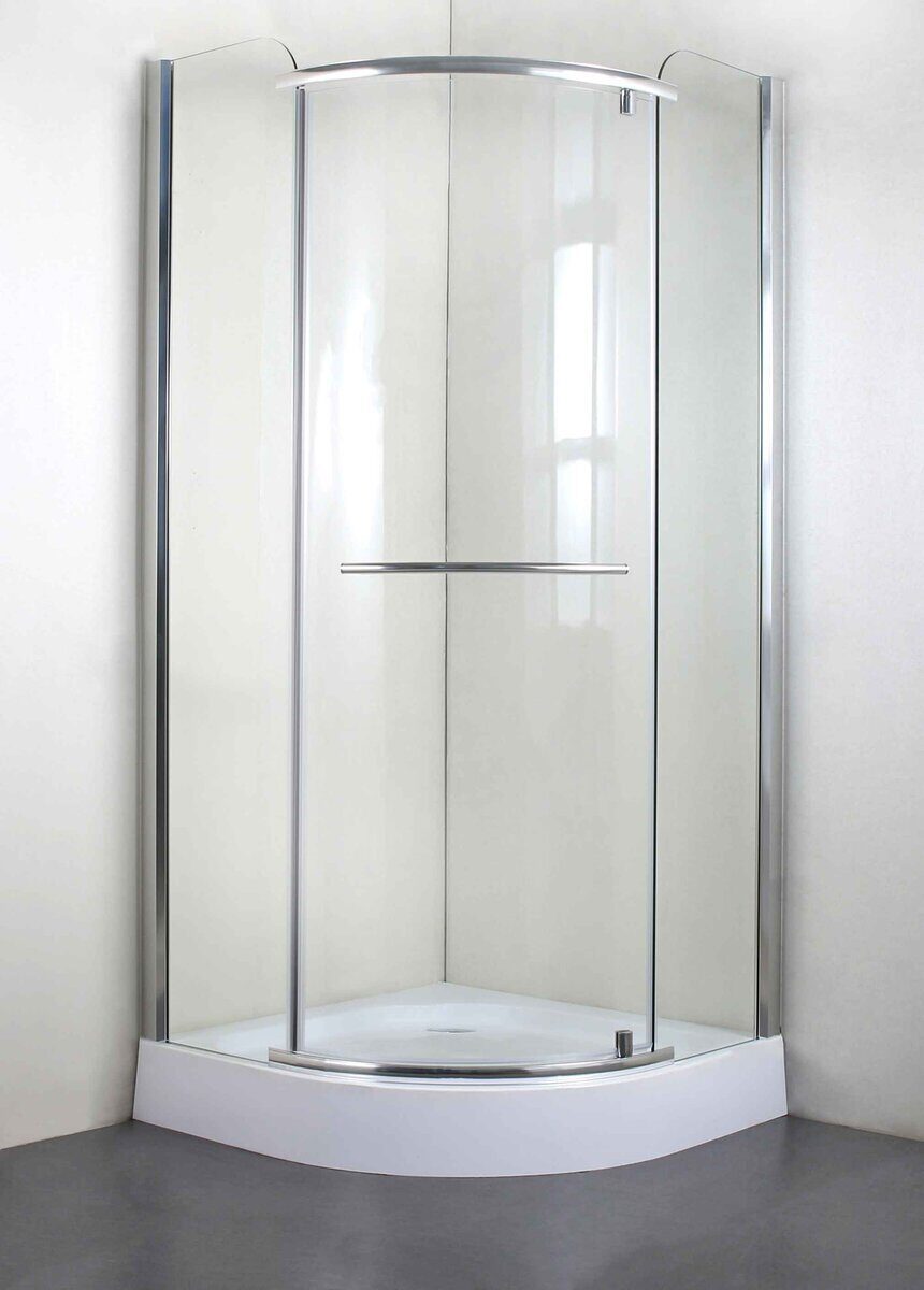 Размеры: 90х90х190см. Закаленное стекло прозрачное, 6мм. Полукруглая. Монтаж на пол, на поддон