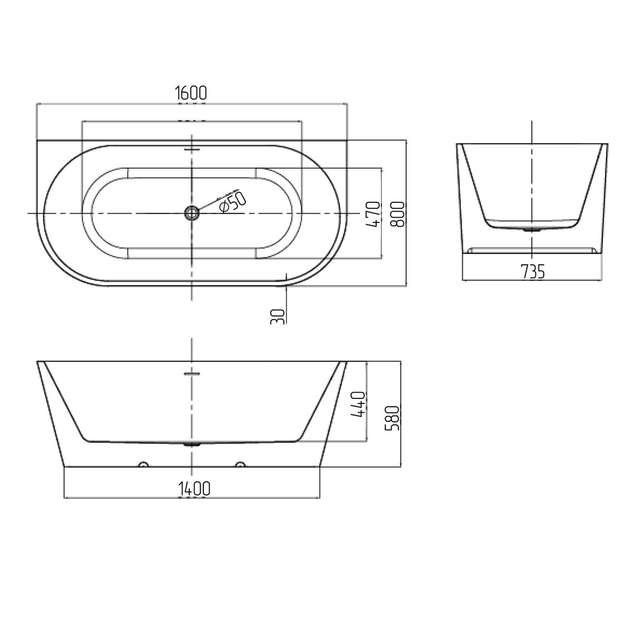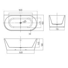 Размер: 160x80см. Глубина: 58см. Материал: акрил. Объем: 0.89 м3