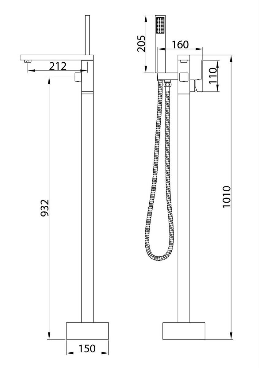 Фиксированный излив, Ручной душ, Гибкий шланг